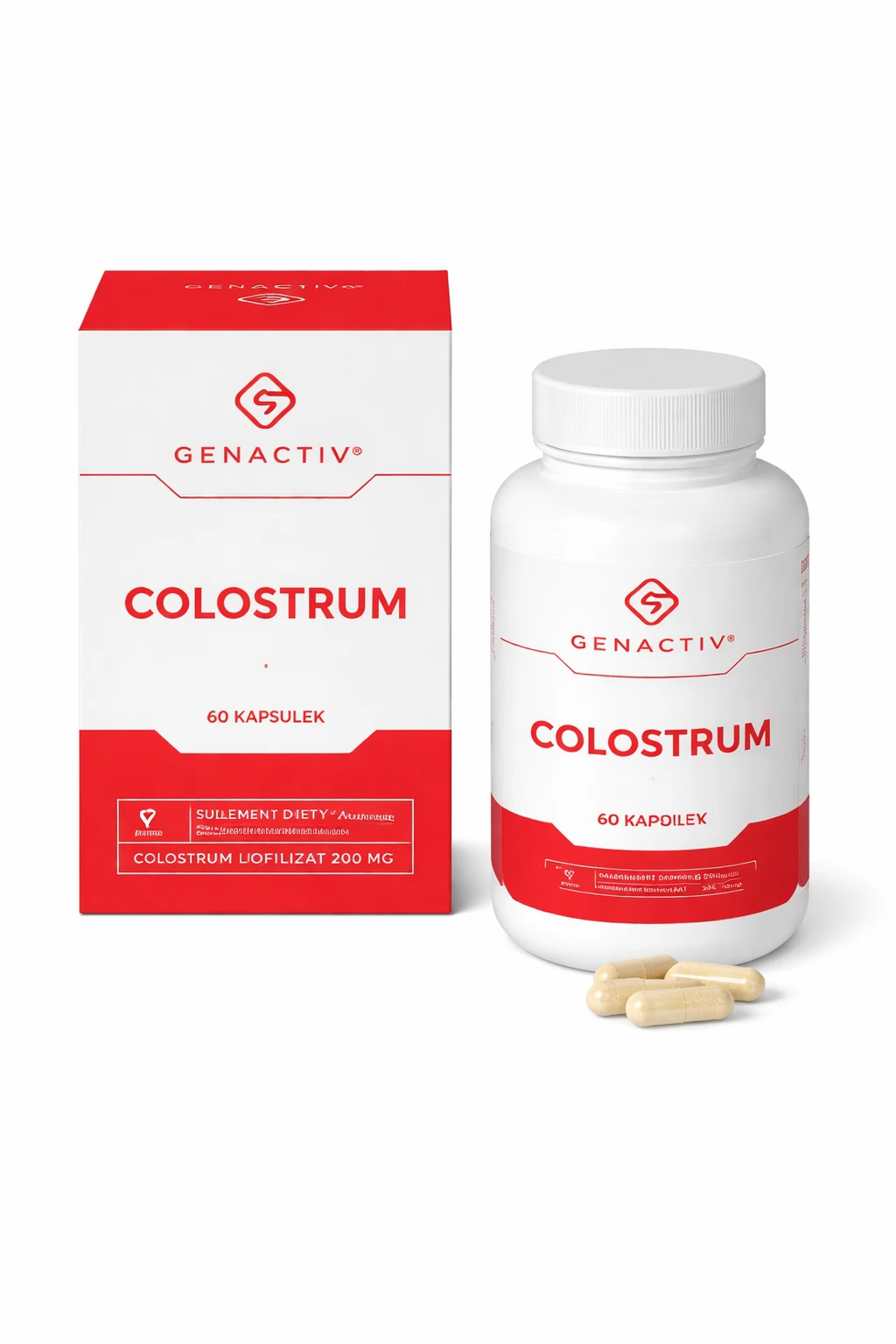 Genactiv Colostrum Colostrigen to wysokiej jakości suplement diety oparty na colostrum bovinum, pozyskiwanym w ciągu pierwszych dwóch godzin po rozpoczęciu laktacji. Dzięki temu zawiera maksymalną ilość bioaktywnych składników: immunoglobuliny, witaminy, minerały, czynniki wzrostu, PRP (białka bogate w prolinę), lizozym i laktoferynę.